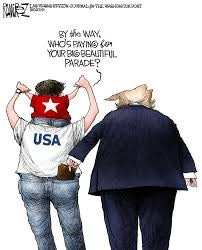 Weather permitting, the public is invited to celebrate his natal moment for ten hours on the National Mall before the U.S. Army surrenders its 250-year history to his ego.