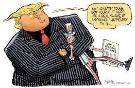 Donald John Trump came to high office in 2017 as a failed business man shunned by the powerful and influential persons in his hometown of New York City. He rode to political success as the star of a television series that portrayed him as a tough and successful entrepreneur. He was elected even though, or perhaps because of, his destain for rules of law and custom that would hamper his whims and objectives. Even his blatant boasting as an unapologetic serial abuser of women was acceptable to a majority of the voters.
