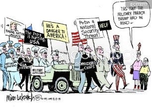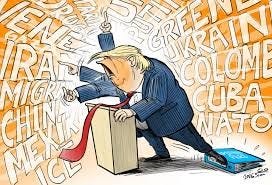 2. Unprecedented, unwarranted, and completely offensive posturing domestically. He so much is like a misbehaving male puppy. What he does not mark, he diminishes in value or consumes in part or whole. Examples--other than paving over the Rose Garden, tarting up the Lincoln Bathroom, gilding the Oval Office and associated public spaces, starting construction of an Arc de Trump facing and taller than the Lincoln Memorial, and allowing a cage match viewed by 50,000 spectators on the South Lawn on the 250th anniversary of the Declaration of Independence—follow:
