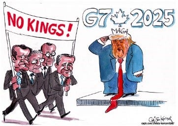 Elsewhere, over 5 million persons attended 2000 No Kings rallies held across America (anywhere away from the Birtday Boy) on the same day.