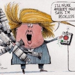 Russia is rattling its nuclear sabre. This is a dangerous play. It is a bad habit arising like a terrible phoenix from the ashes of the demented days of MAD (mutually assured destruction) policies. Our Guy has made sure there is no adult in the room to constrain his urge to assert dominance. His fragile ego and poor impulse control make him a clear and present existential threat to the safety of our precious planet and every living thing dependent on its health.