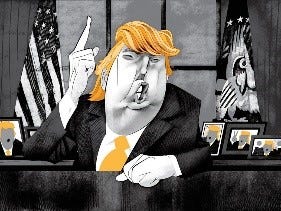 He is a predatory businessman taking full advantage of his lucrative side hustle as the 47th president of these barely United States of America. He is a colossal failure masquerading as a redemptive political option.