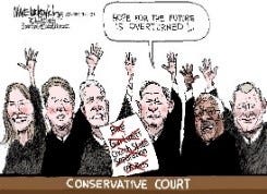 The Roberts’ Court comes to history courtesy of a time when ancient fears have been conjured purposefully to the benefit of persons of privilege. A context in which it is possible to consider denying citizenship to persons born on our soil and/or contributing daily to the health and wealth of our nation. The open holdings and closed rulings of the Roberts Court run counter to the preamble of our Declaration of Independence. Specifically, that: