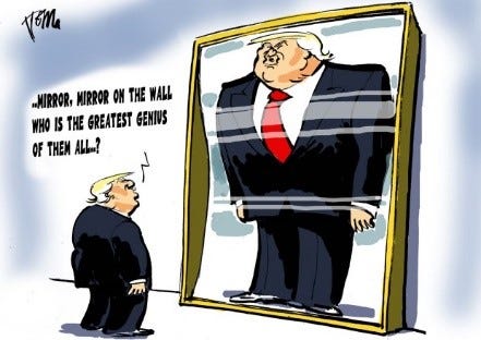 The images the Mad King prefers and disseminates are of the fun house variety. They are distorted by imperfections in the viewing surface. Alternate facts and self-serving untruths warp the image of the moment. Erratic “transactional” postures and results leave a trail of weakness, uncertainty, and damage which cannot be allowed to be articulated, much less prosecuted.