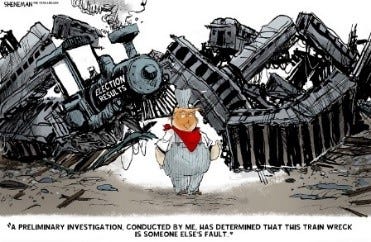 Donald John Trump is a corrupt businessman with a lucrative side gig as the 47th president of these barely United States. He is a dangerous embarrassment to himself, America, and all animal, vegetable, and mineral life forms on this planet and in near space.