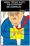 For the first time in quite a while, the Mad King was threatened by the events of the day. Regardless of the diversionary blizzard of deals, steals, domestic suppressions, and international aggressions, his brand and personal liberty were at unacceptable risk. In his remarks of the moment, he played his famous air accordion. The way he does when he is trying to sell his way out of a corner into which his misconduct has painted him.