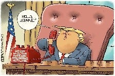 Previously, the international community had tried to discipline Putin’s territorial misconduct by evicting Russia from the Group of Eight, a political forum of highly industrialized countries. Russia was allowed to join it in 1997 and was suspended from it in 2014 because of its annexation of Crimea. Our Dear Leader keeps trying to get NATO and the G7 to readmit Putin to councils of privilege and power still available to the United States of America.