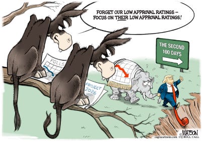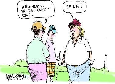 One hopes Donald John Trump has some artistic talent. The only way he can draw a crowd is with his sharpie. On Tuesday, 29 Apr 25, he delivered an almost incoherent “100th Day in Office Achievement Speech” to about 2400 persons INSIDE the Macomb Community College Sports & Expo Center in Warren, Michigan. The New Republic reports a crowd of about 3000 persons were assembled and peacefully protesting Trump 2.0 OUTSIDE the venue. Administration spin doctors had to neutralize Demented Donny’s trouble filling seats. The party line was “Trump is more effective when he stays in the White House.”