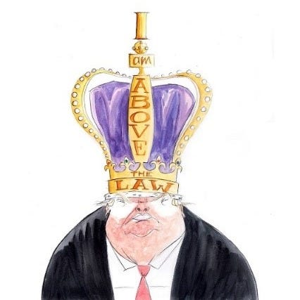 During his interregnum, Donald John Trump was accused of criminal conduct related to Election 2020. He sued the United States justice system, pleading immunity from actions charged in lower courts as criminal, and won.