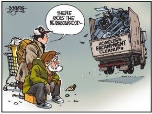 Too many Americans are one paycheck away from homelessness to ignore remedial implementation strategies and details. Human rights and herd health are at risk when force is unleashed against marginal members of the governed.