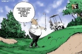 Expect the Mad King to bristle at the offense. If the past be prologue, he will double down on occupying sanctuary cities with sworn national and seized state forces carrying arms against persons protesting illegal and immoral migrant resettlement programs.